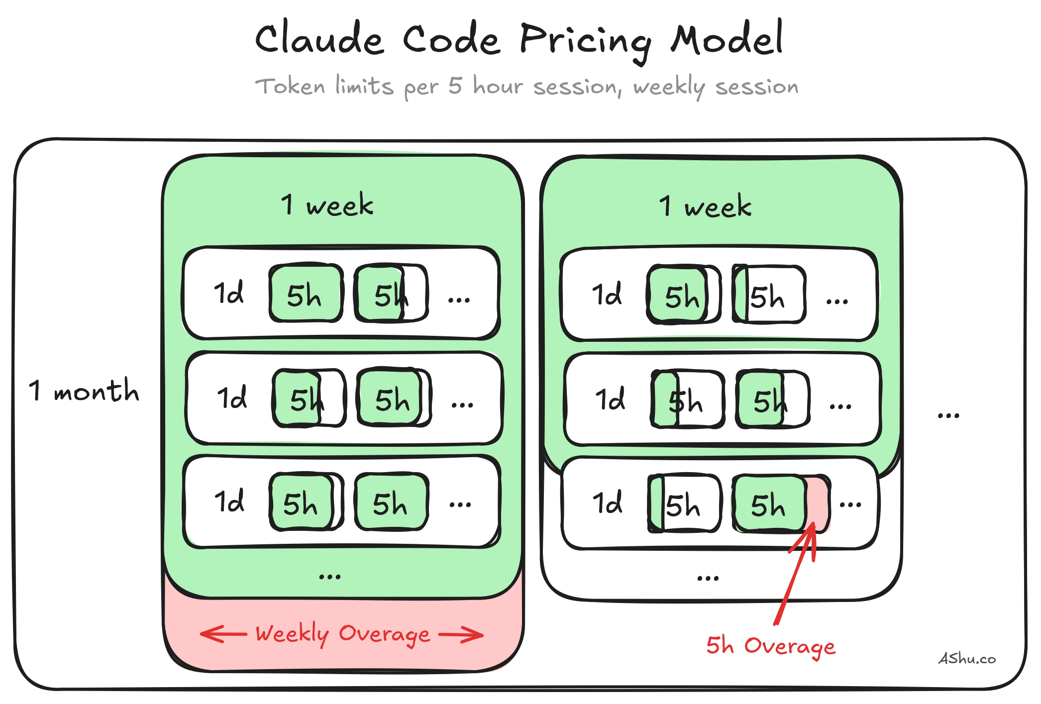 Claude Code also has "weekly limits" that are a second layer on top of the 5-hour limit. Imagine if you maximized the 5-hour limit, 24 / 7; that could get extremely expensive for Anthropic. So, Anthropic sets an upper limit for sustained usage over the week. If we reflect on pricing design, they could have set it at a 1 month limit. But by setting it to be weekly, you must utilize your weekly limits, because it doesn't roll over to the next week.