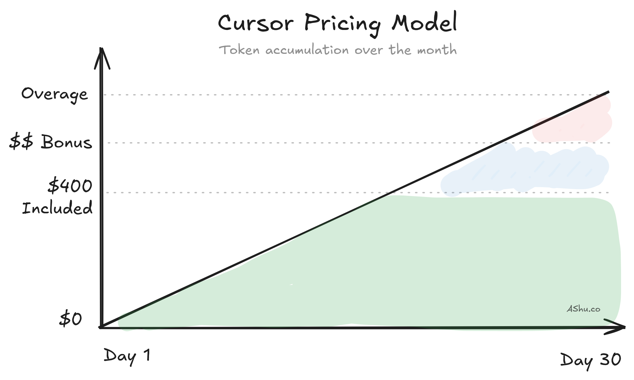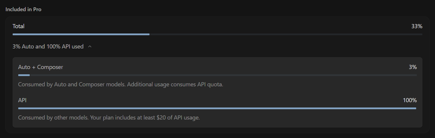 So when we compare Cursor vs Claude Code's pricing models, Cursor is billed by monthly total tokens consumed. That means I could leave Cursor untouched for 29 days, then use up all my tokens in the 30th day. (I assume there is a rate limit for extremely bursty token usage in Cursor, but I've never hit it.) It also means that comparing Cursor to Claude Code licensing is an apples to oranges comparison.
