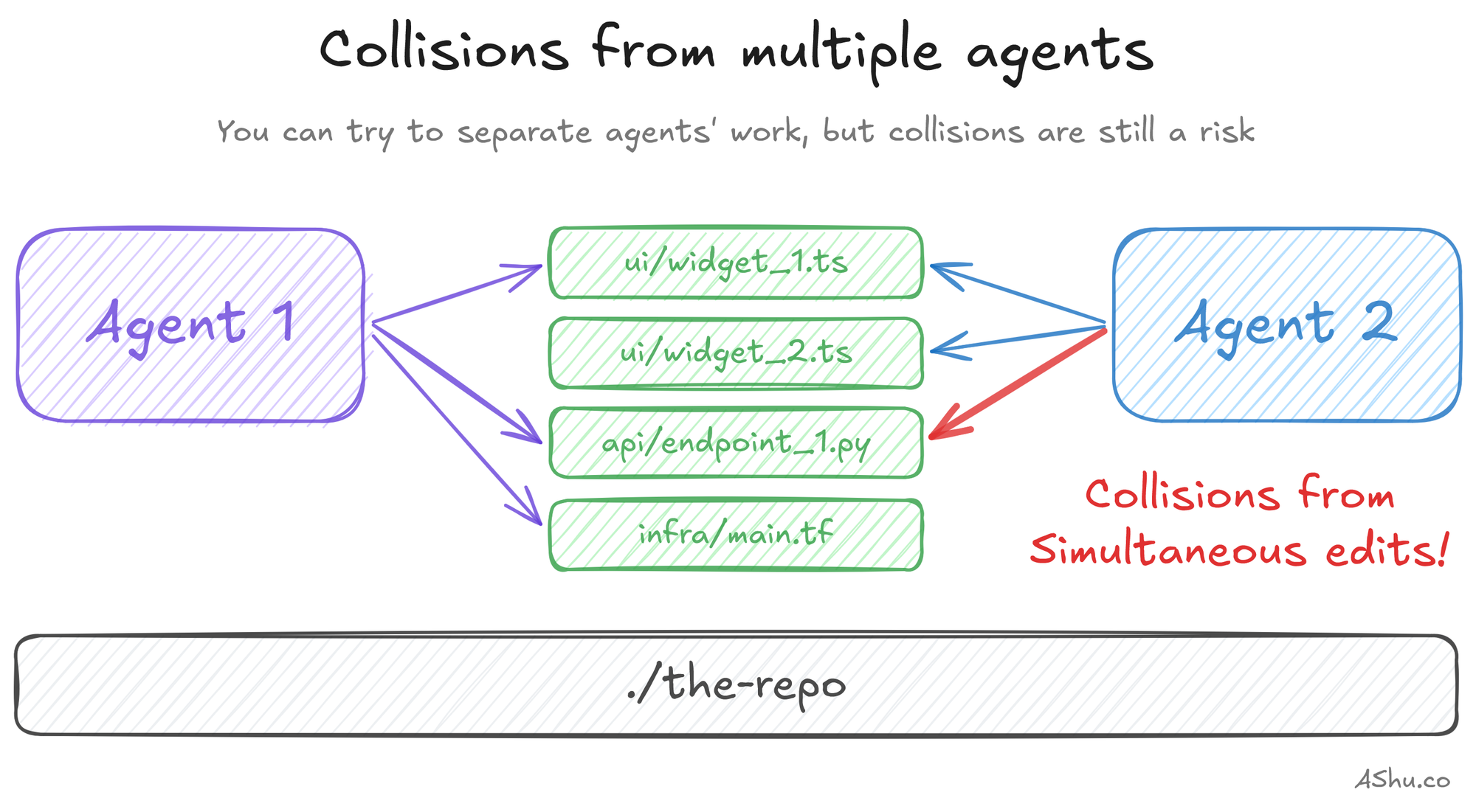 But there's a technical problem you'll face first. If two agents are touching the same files, you'll get merge conflicts, overwritten work and outdated understanding of the code. In the first few hours working with parallel coding agents, I tried to keep them productive and focusing on separate concerns in the same repository.